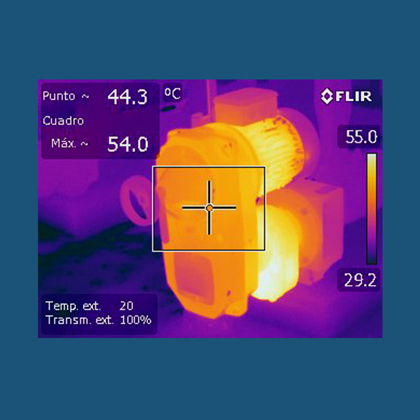 Termografía en motor con reductor de velocidad y caja de engranajes.