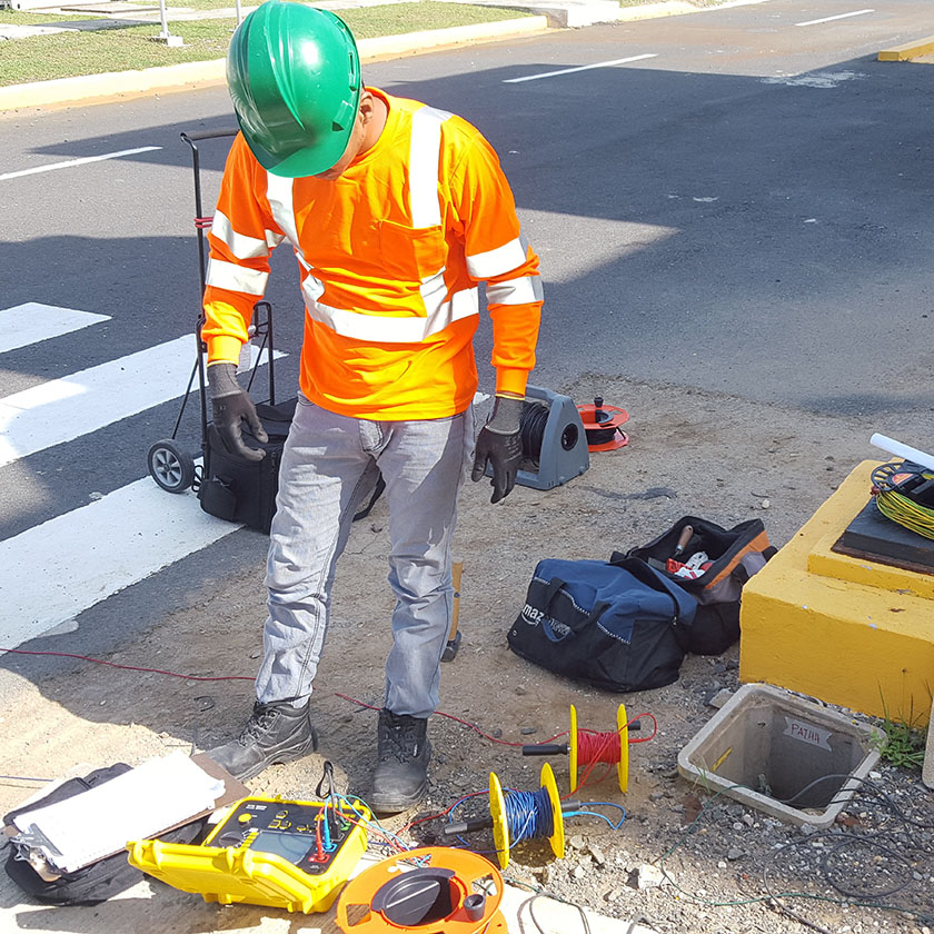 Revisión de cabledo para puesta a tierra, varillas y conexiones eléctricas.