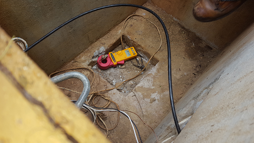 Revisión de cabledo para puesta a tierra, varillas y conexiones eléctricas.