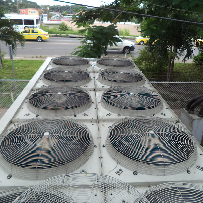 Revisión y cambio de motores para ventiladores en chillers de enfriamiento.