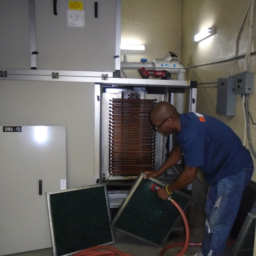 Limpieza para filtros en manejadoras de aire acondicionado.